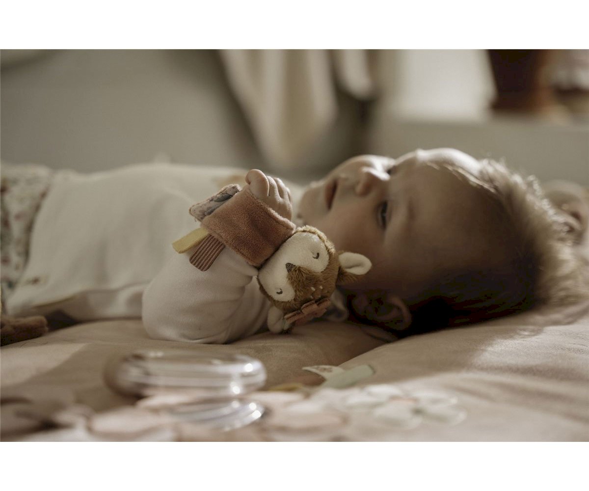 Un ejemplo práctico: el Sonajero de Muñeca Fairy Garden Little Dutch, que se coloca en la muñeca o el tobillo del bebé. Hace sonido con el movimiento, estimulando la coordinación y el descubrimiento del propio cuerpo.