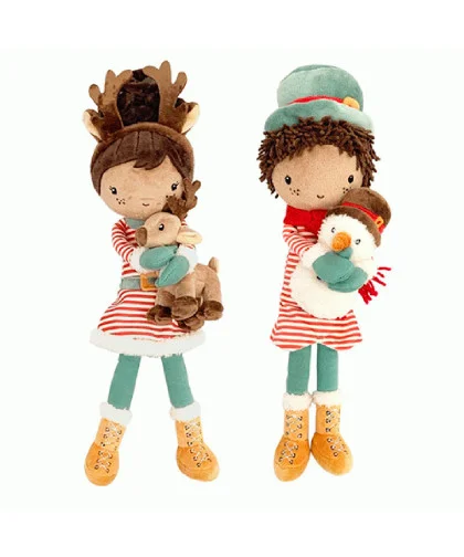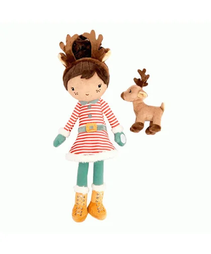 Evi es una suave muñeca de Navidad que abraza un bonito y jugueton reno que puedes separar del muñeco. Estas navidades tus peques difrutaran un monton jugadon con con el.